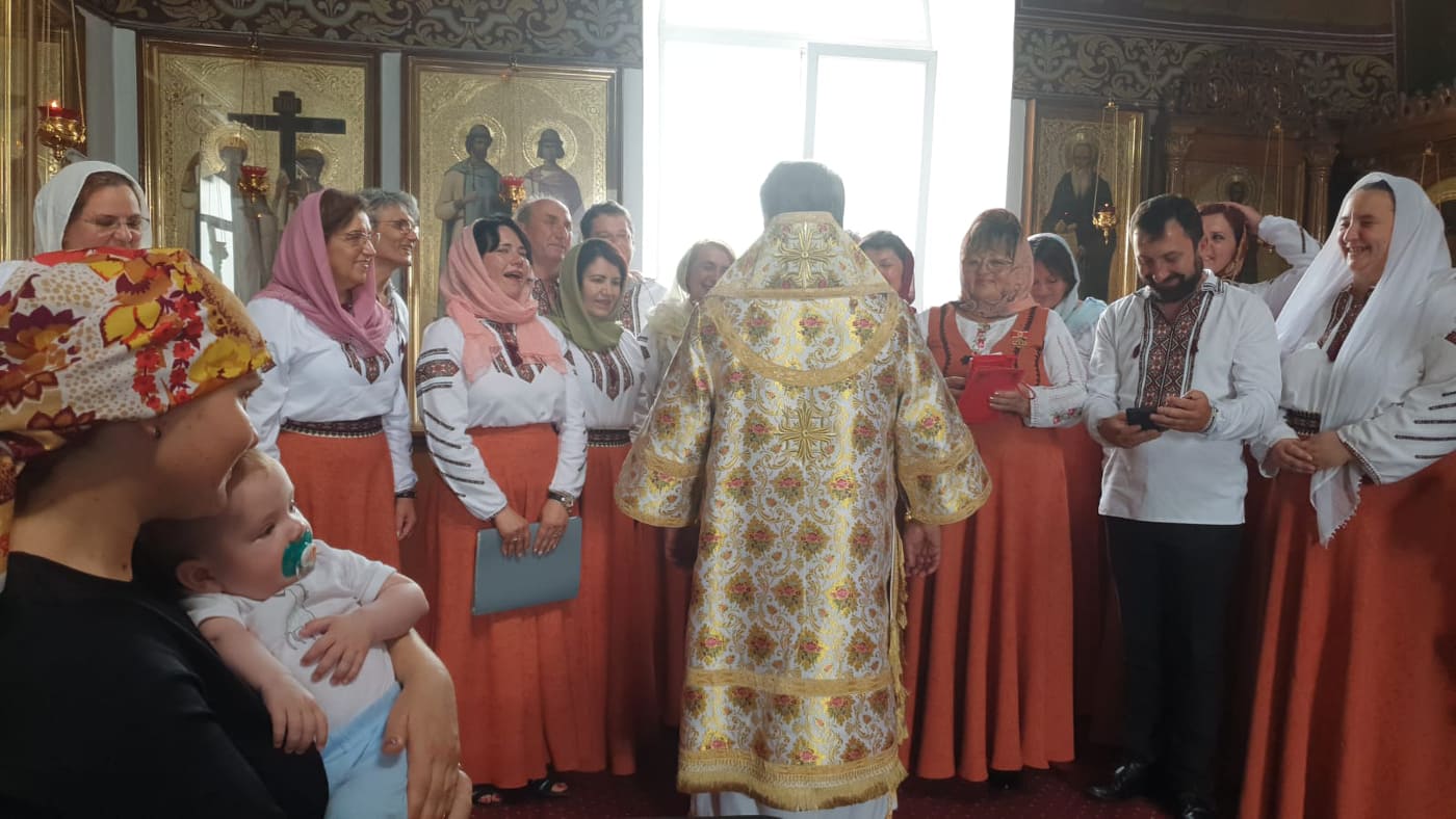 Cântările Sfintei Liturghii au fost interpretate de două coruri catedralei și oaspeții catedralei noastre corul “George Enescu” din or. Dorohoi, România condus de Doamna Gheorghina Gusulei.